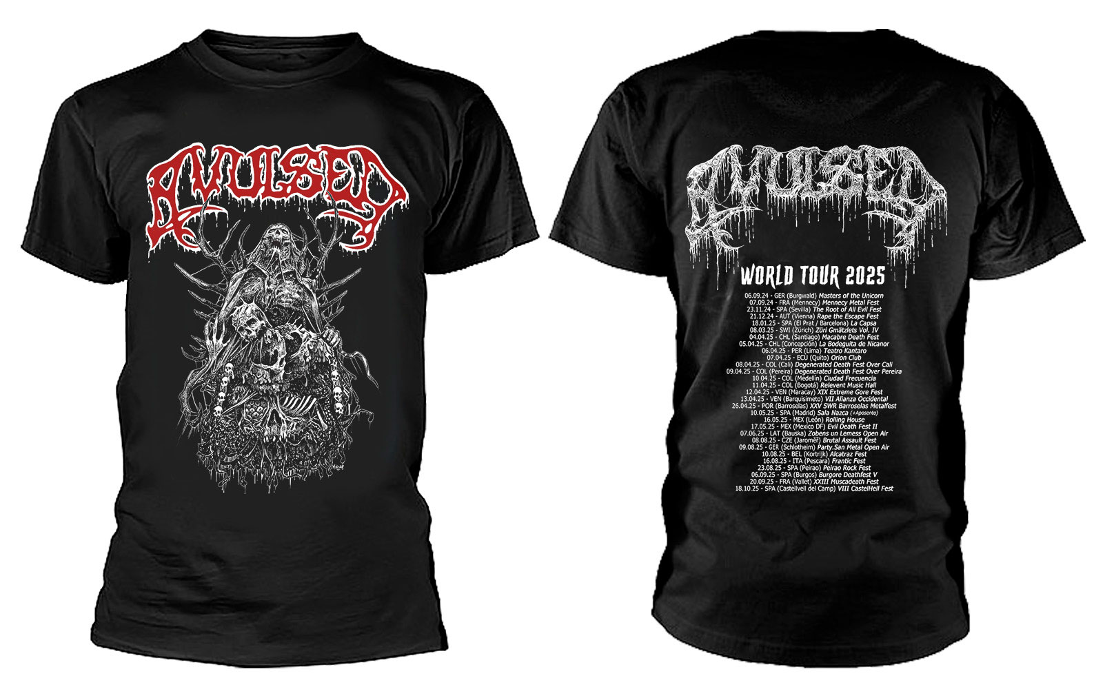 Clearance sale of the few remaining AVULSED 2025 World Tour T-shirts. If you missed out, this is your last chance!!