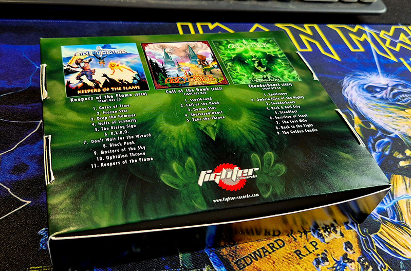 Limited edition 3-CD box set (only 15 copies available) containing the two albums and EP released during their time on Fighter Records by this US epic Power/ Heavy Metal band. Their sound blends traditional Heavy Metal with Power Metal and Shred, resulting in epic and dynamic compositions, virtuosic guitar solos, and an absolutely brilliant vocalist. A must-have for fans of classic heavy metal like DIO, YNGWIE MALMSTEEN, RACER X, MANOWAR, SAXON, VISIGOTH, QUEENSRYCHE...