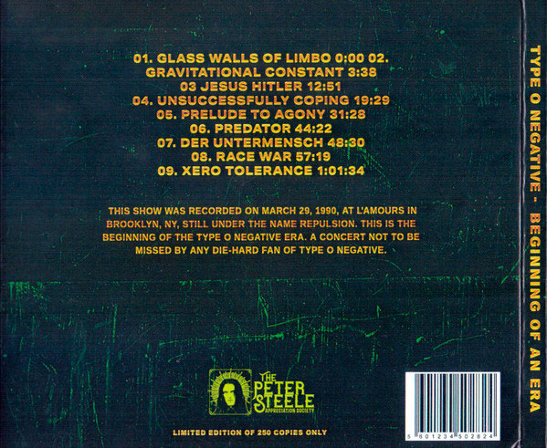 Edición no oficial en CD limitado a 250 copias del primer show bajo el nombre de REPULSION con 9 temas grabados en el L'Amours in Brooklyn (NY/USA) el 29.03.1990 [Digipack]